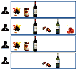 | pasta | t.souse | red wine | seafood | white wine | salami | 1 | 2 | 3 | 4 | 5 |